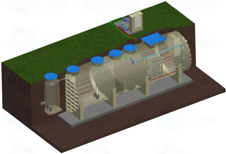 Tưới cây xanh tự động: Nước thải sau xử lý của module được dẫn vào bể chứa nước sạch, tại đây chủ đầu tư có thể yêu cầu nhà thầu lắp them hệ thống tưới cây tự đọng theo thời gian quy định.